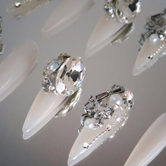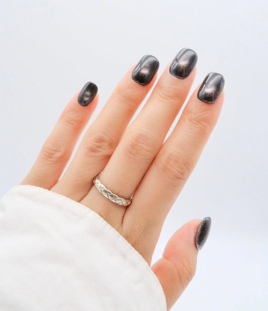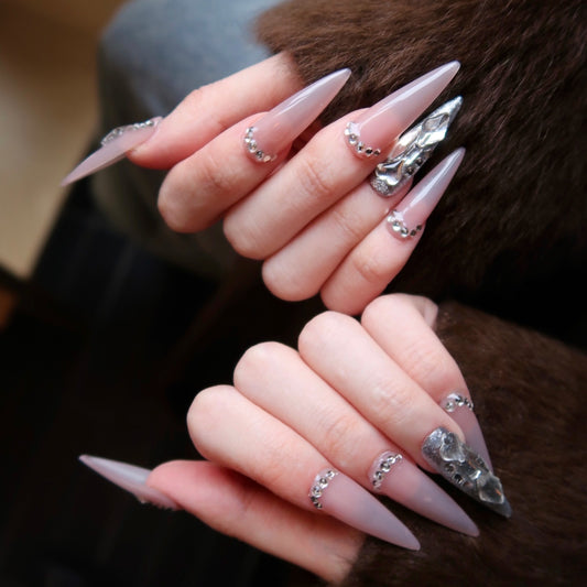 Black and White Gothic Chrome-Style Handmade Press On Nails