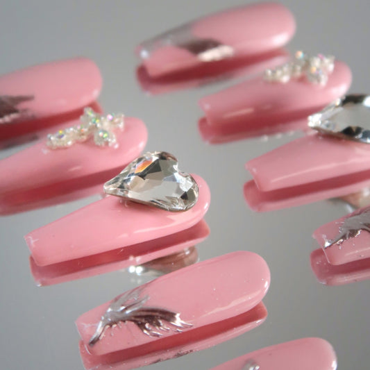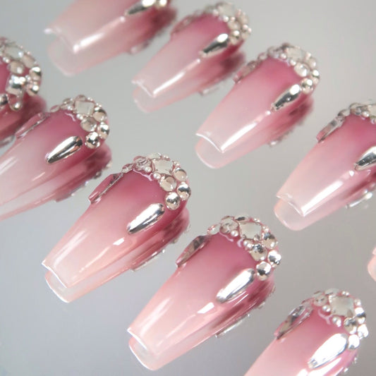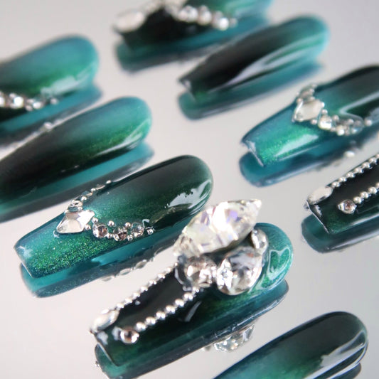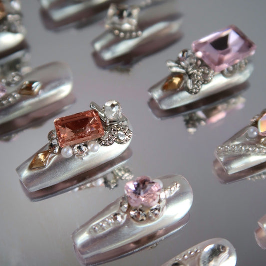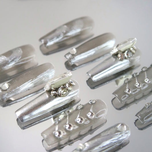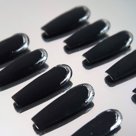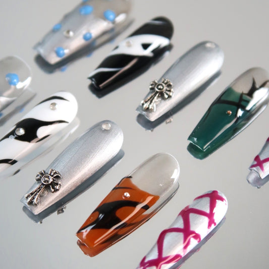 Black and White Gothic Chrome-Style Handmade Press On Nails